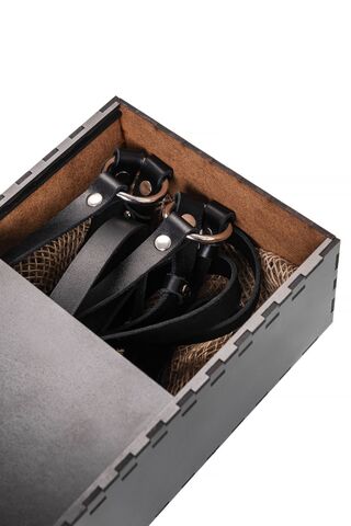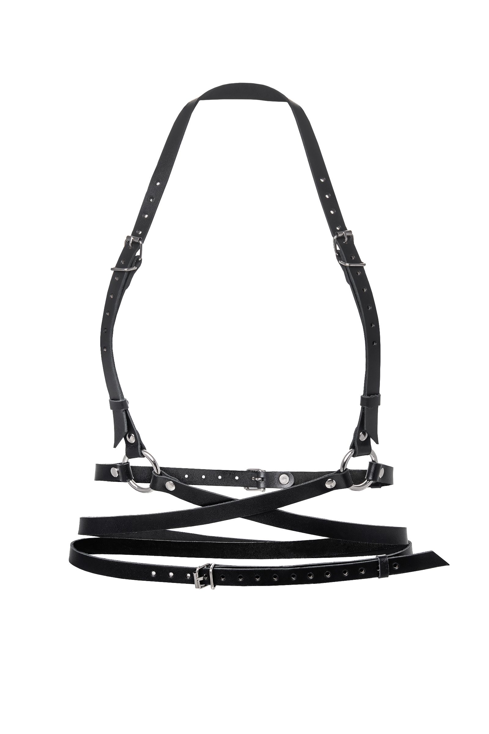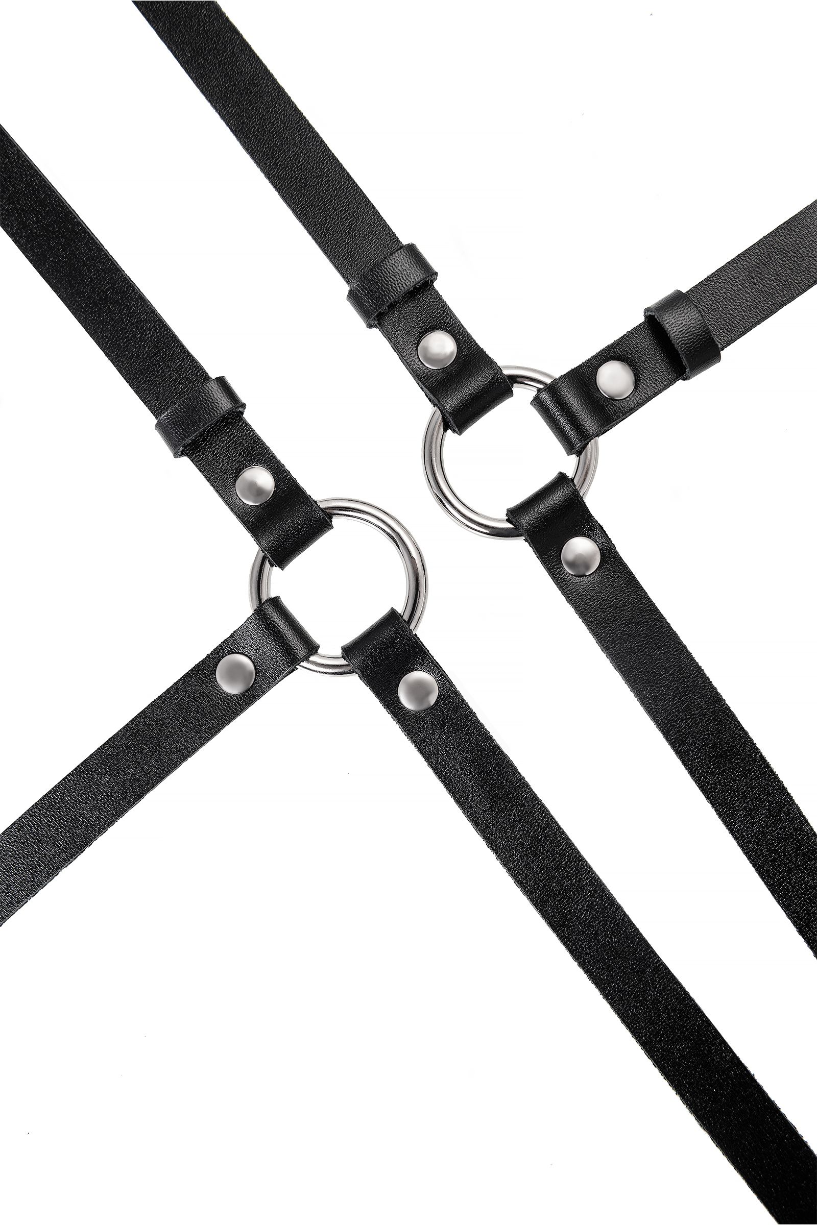 Добавьте дерзких нот в Ваш образ, с портупеей от Pecado. Она - надежный и крепкий атрибут для ролевых игр и жестких БДСМ-сессий. Аксессуар выполнен полностью из натуральной, черной кожи вручную. Материал обладает повышенной износостойкостью. Портупея тактильно приятная, плотно прилегает и комфортно сидит на теле. Каждый ремешок в меру мягкий и эластичный. Высота посадки портупеи регулируется с помощью застежки. Благодаря перекрестной обвязке на талии, аксессуар акцентирует внимание на талии и подчеркивает достоинства стана. Вся металлическая фурнитура выполнена из материалов высокого качества. Спереди, в области пояса, ремешки соединены металлическими кольцами. К ним можно присоединять и другие аксессуары. Портупею можно носить как на обнаженном теле, подчеркивая все достоинства фигуры, так и поверх нижнего белья, и одежды. Подходит для любителей сдержанного, минималистичного стиля.