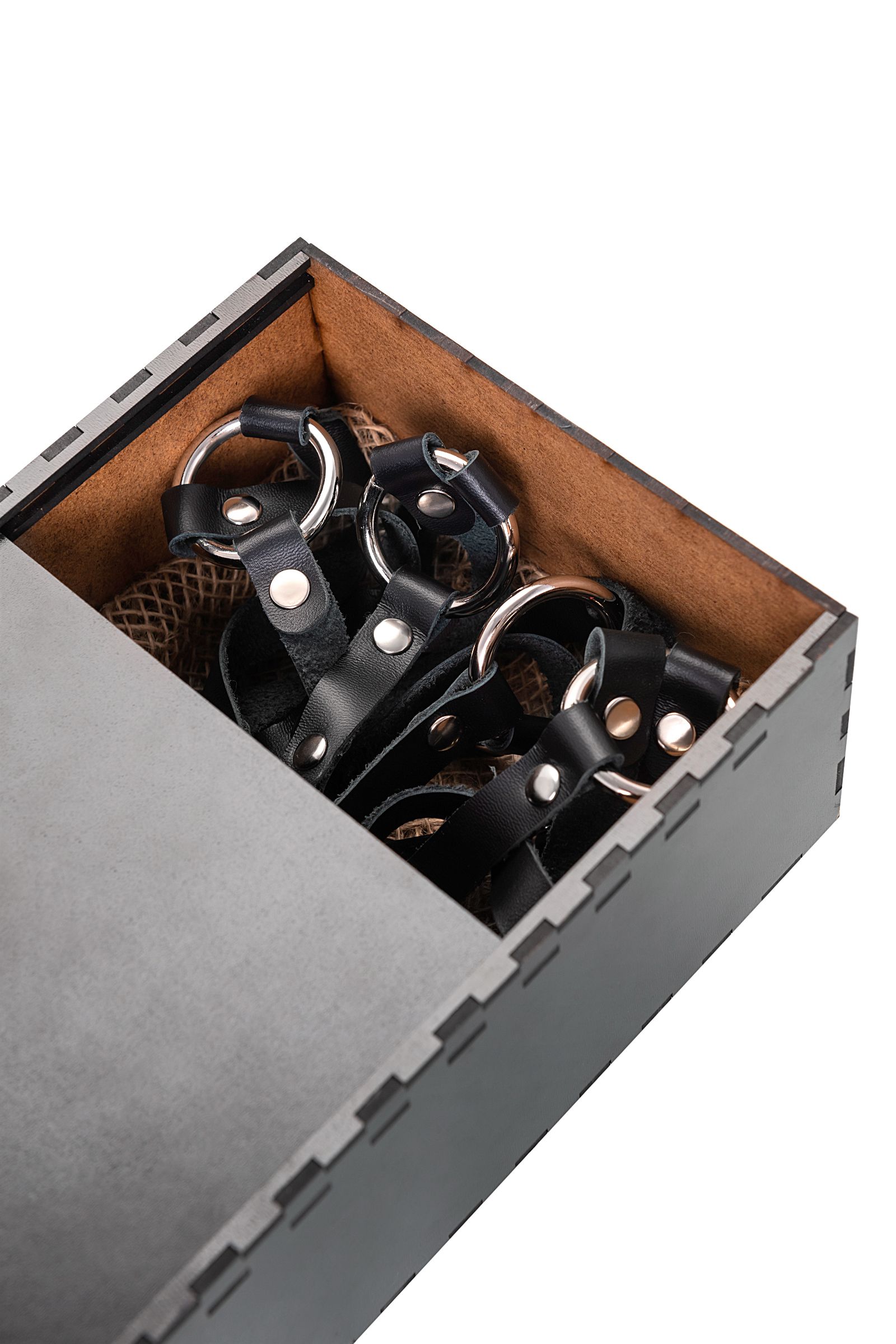 Черная кожаная портупея «Соблазн» с кольцами
