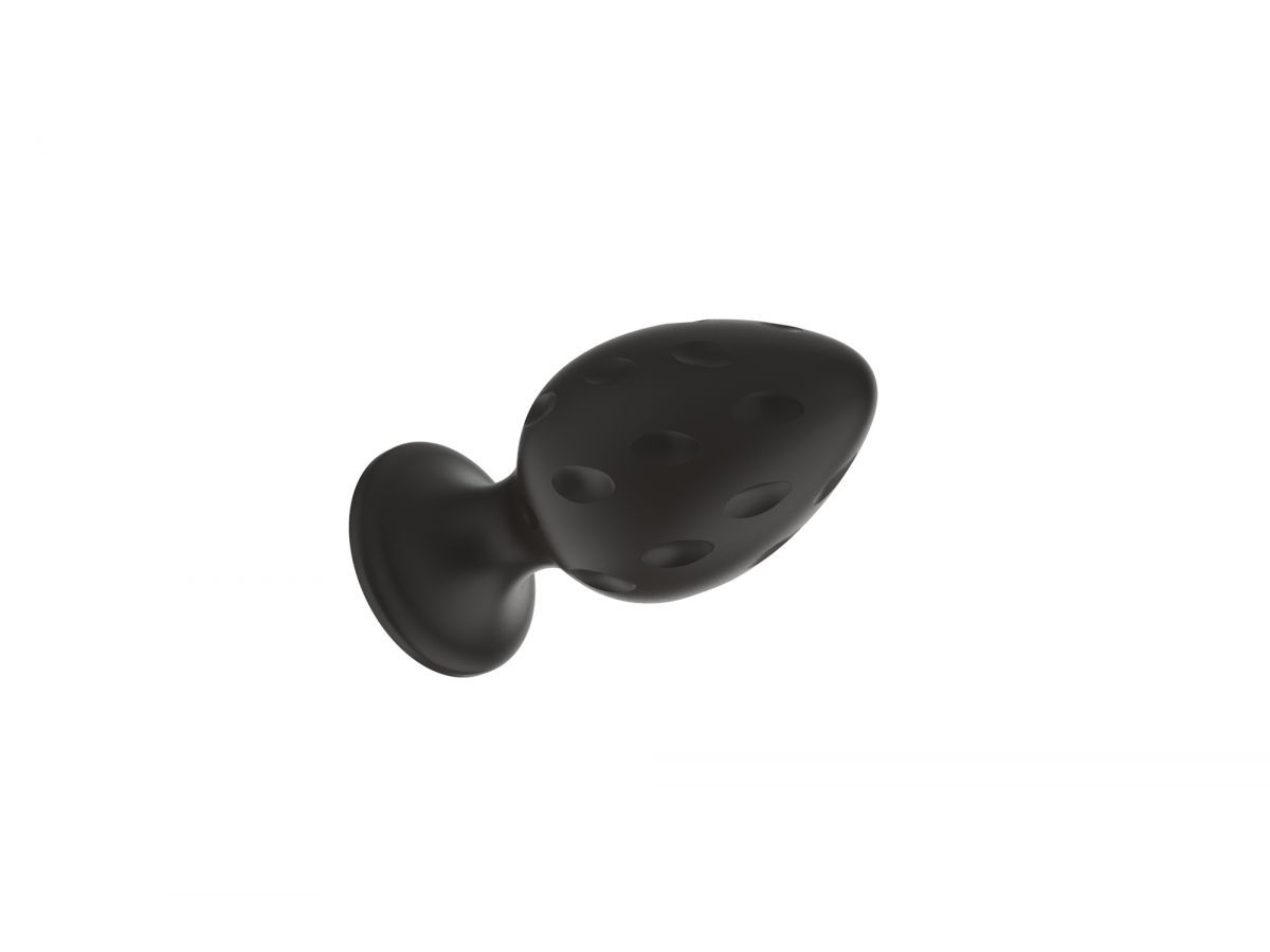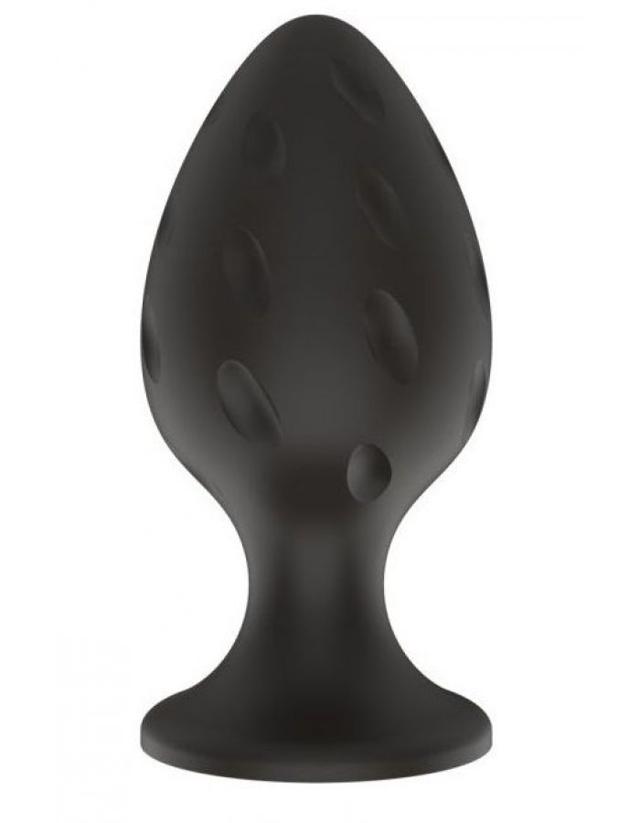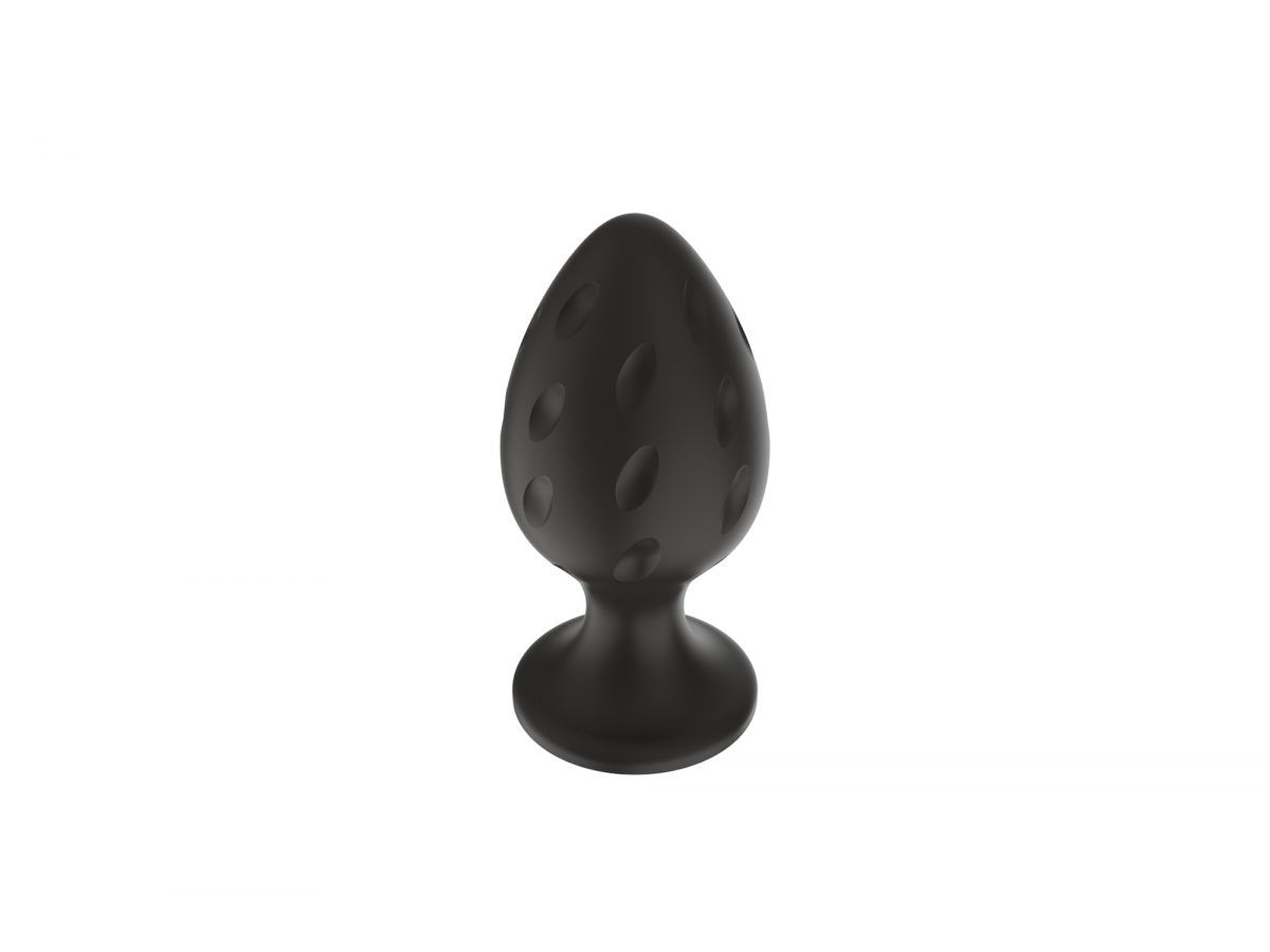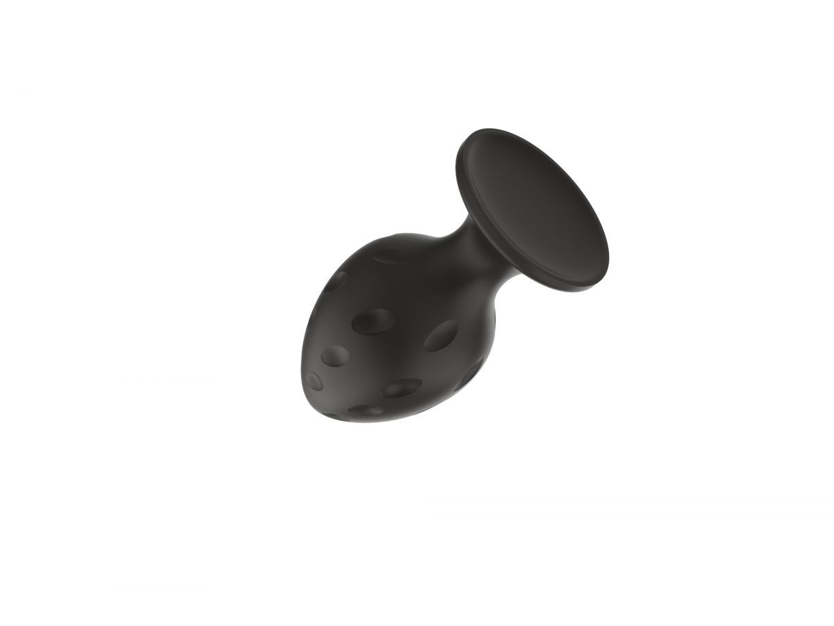 Черная малая силиконовая анальная пробка с рельефом в виде углублений