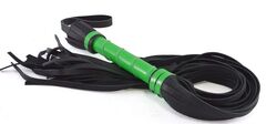 Черная многохвостая плеть с зеленой лаковой ручкой - 60 см.