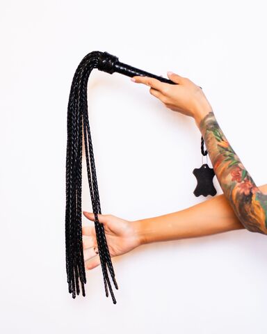 Плетеная многохвостая плеть-флоггер из натуральной кожи премиум качества. Плеть имеет удобную рукоять с петлей для фиксации изделия на запястье. Флоггер подходит для БДСМ практик, игровых наказаний, и для болевого воздействия. Для того, чтобы можно было рассмотреть вид и качество товара, он упакован в прозрачный пакет. Длина ручки - 22 см.