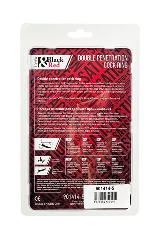 Черная насадка на пенис для двойного проникновения Black&Red - 16,5 см.