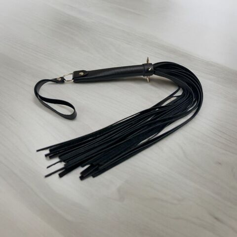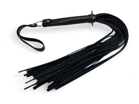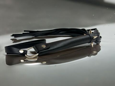 Плеть Risky Arsenal - идеальный вариант для любителей острых ощущений и ярких переживаний во время любовной игры! Аксессуар выполнен из натуральной черной кожи высокого качества, имеет необычную стильную форму рукоятки, которая дополнительно декорирована металлическими шипами. Предлагаем включить фантазию и поиграть с плетью не только стандартным способом: можно завязать партнеру глаза и использовать шипастую рукоятку в качестве своеобразного колеса Вартенберга, что может очень круто разнообразить сценарий. Для удобства на рукоятке имеется кожаная петелька. Длина хвостов - 40 см.