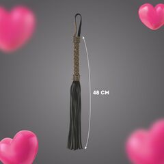 Плеть-флогер для ролевых игр поможет забыть обо всем и максимально сосредоточиться на своих ощущениях. Она усилит все чувства, подарит невероятные эмоции обоим партнёрам. Плеть состоит из длинных хвостов и удобной декорированной рукоятки с заклепками и с петлёй.