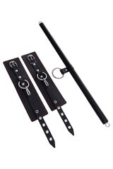 Набор для бандажа состоит из большой распорки с тремя точками крепления и пары оков с контрастной строчкой красного цвета, всё это в фирменной деревянной коробке Pecado BDSM. С этим набором расширить возможности и способы фиксации проще простого! Варианты и комбинации ограничения свободы партнера зависят от вашей фантазии и желаний. Распорка позволяет зафиксировать ноги партнера в широко разведенной позиции. Частичное обездвиживание и невозможность двигать руками или ногами дают вам полную власть над партнером – взрослые игры для взрослых. Кольцо посередине распорки позволяет использовать дополнительные аксессуары, либо приковать партнера к кровати или другому предмету и экспериментировать с позициями и ощущениями. Длина распорки - 50 см.