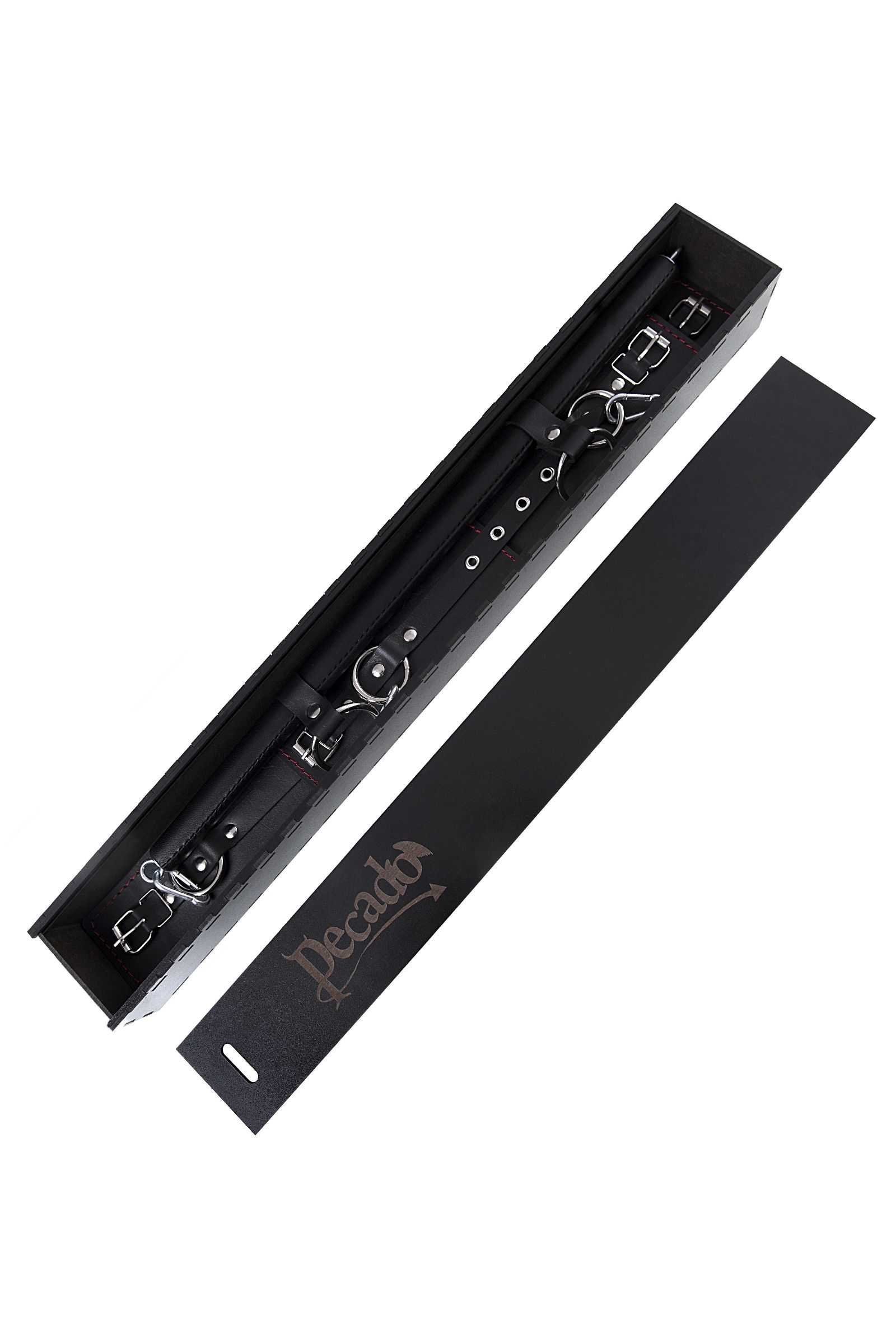 Готовы играть по-взрослому? С набором от Pecado BDSM воплощайте в жизнь смелые сексуальные фантазии, которые до этого момента были только мечтой. Хотите избавиться от искушения? Просто поддайтесь ему с Pecado BDSM! Набор для бандажа состоит из большой распорки с четырьмя точками крепления и пары оков и наручников с контрастной строчкой красного цвета, всё это в фирменной деревянной коробке Pecado BDSM. С этим набором расширить возможности и способы фиксации проще простого! Варианты и комбинации ограничения свободы партнера зависят от вашей фантазии и желаний. Распорка позволяет зафиксировать ноги и руки партнера в широко разведенной позиции. Частичное обездвиживание и невозможность двигать руками или ногами дают вам полную власть над партнером – взрослые игры для взрослых. Кольцо посередине распорки позволяет использовать дополнительные аксессуары, либо приковать партнера к кровати или другому предмету и экспериментировать с позициями и ощущениями. Длина манжет оков - 25 см, ширина - 6,5 см.