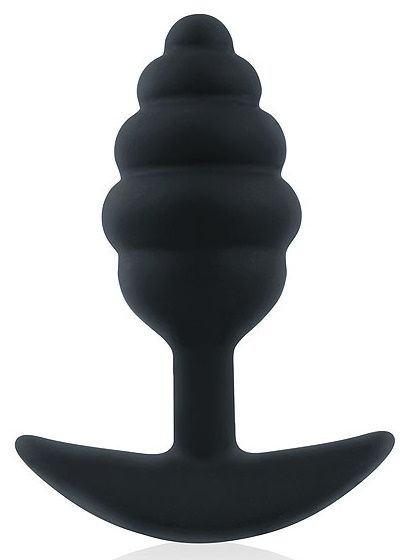Черная ребристая анальная втулка с ограничителем - 9 см.