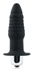 Черная ребристая вибровтулка с ограничителем - 7 см.