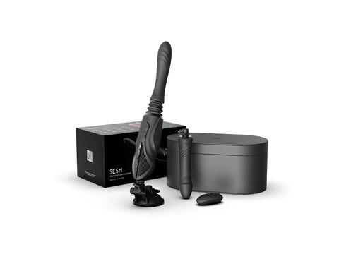 Черная секс-машина с функцией нагрева, насадками и присоской Sesh