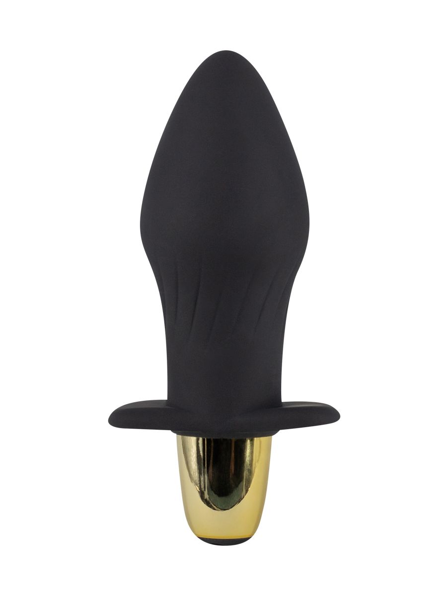 Черная силиконовая анальная пробка с вибрацией - 10,5 см.