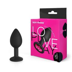 Черная силиконовая анальная втулка с малиновым кристаллом - 7,3 см.