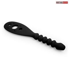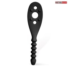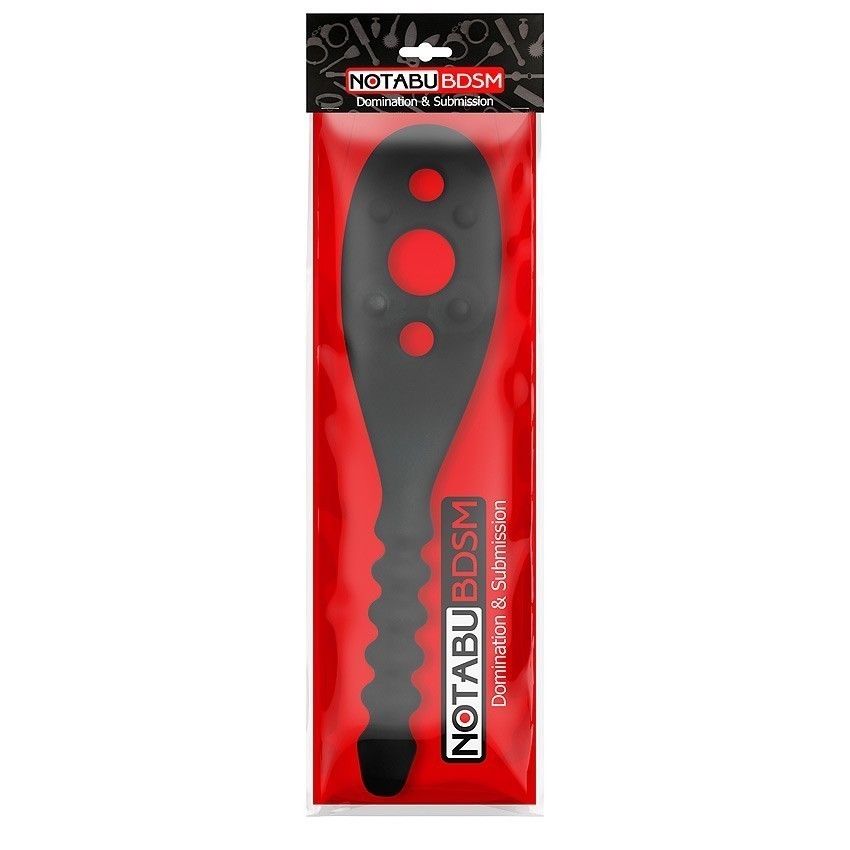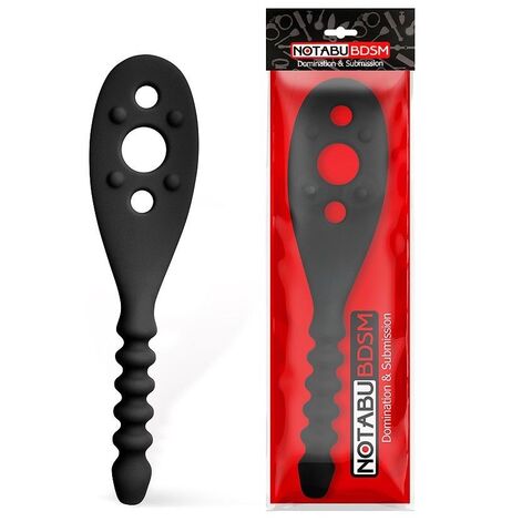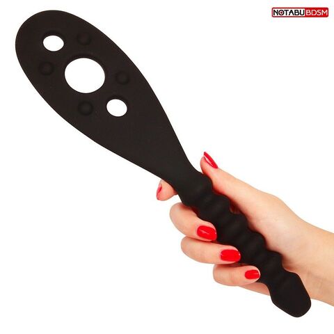 Двойной БДСМ аксессуар для любителей нестандартных эротических развлечений. Совмещает в себе шлёпалку и анальную втулку. Шлёпалка имеет широкую рабочую поверхность с жёсткими шипиками, усиливающими эффект от спанкинга. На шлёпалке имеются отверстия разного диаметра, которые могут отпечатываться на коже. Втулка имеет эргономичную форму ёлочки, способствующую более комфортному введению. Секс-игрушка изготовлена из приятного на ощупь материала, гнётся в разные стороны. Идеально подходит для «разогрева» перед интимной близостью, а также в качестве элемента в ролевой игре. Длина ручки - 11,5 см, диаметр - 2,5 см.