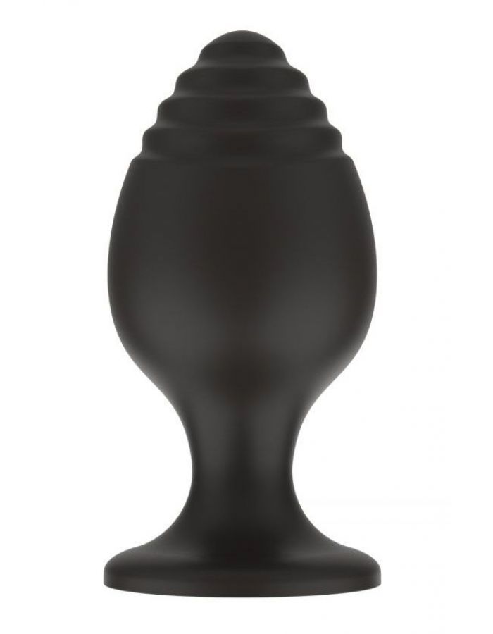 Черная средняя силиконовая анальная пробка с ребрышками на кончике
