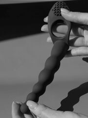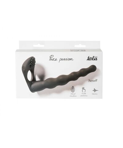 Черная насадка для двойного проникновения Farnell из гипоаллергенного силикона. Обладает рельефной и гибкой формой. Надежно крепится у основания члена благодаря силиконовому кольцу. Кольцо хорошо тянется и подходит на любой размер. Вибропуля в верхней части для клиторальной стимуляции добавит приятных ощущений партнёрше. Работает от батареек-таблеток, которые входят в комплект. Внутренний диаметр кольца – 2,6 см.