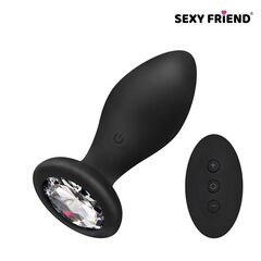 Великолепная анальная втулка с 10 режимами вибрации и пультом ДУ. Может использоваться для подготовки к анальному сексу, в качестве игрового элемента во время прелюдии, при интимной близости для получения ещё большего удовольствия. Эргономичная форма секс-игрушки способствует комфортному введению и дарит фееричные ощущения. Виброрежимы усиливают стимулирующий эффект. Пульт управления позволяет любому из партнёров переключать виброрежимы во время занятий любовью. Эротический аксессуар декорирован цветным кристаллом. Украшение надёжно приклеено к основанию втулки, что исключает его выпадение. Секс-игрушка изготовлена из приятного на ощупь материала. У основания гнётся в разные стороны. Компактные размеры позволяют брать втулку с собой в поездки.