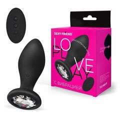 Черная вибровтулка с прозрачным кристаллом и пультом ДУ - 8,5 см.