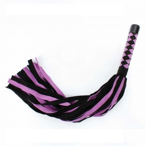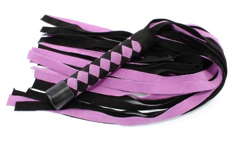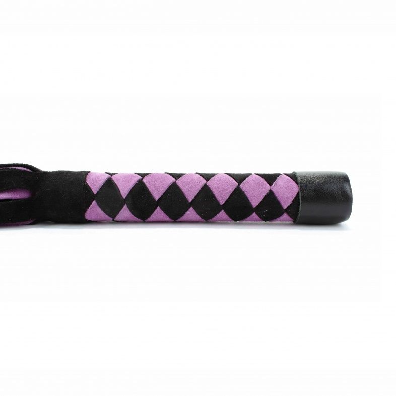 Плеть выполнена из натуральной замши черного и лилового цветов. Рукоятка украшена шахматным плетением. Длинные широкие хвосты делают аксессуар эффектным. Количество хвостов - 24 штуки. Возбуждающая воображение плеть поможет воплотить задуманное в реальность. Длина хвостов - 40 см.