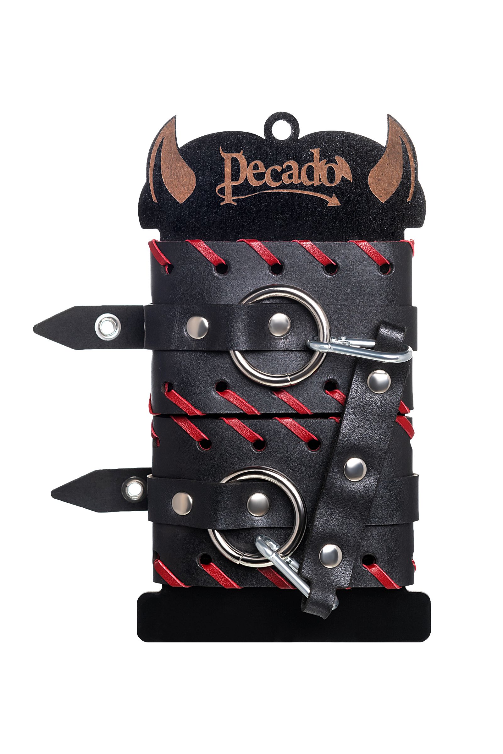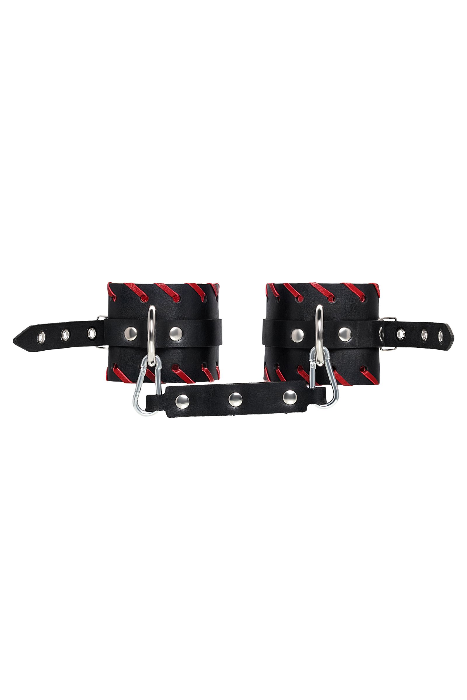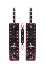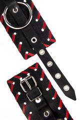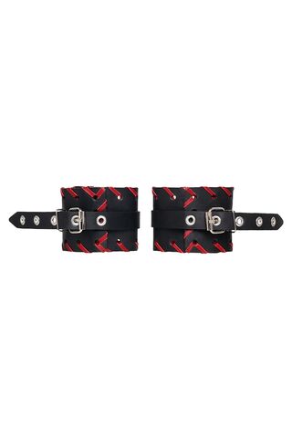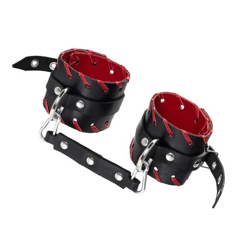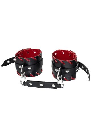 Готовы играть по-взрослому? Не бойтесь своих желаний! Основатели бренда уверены: лучший способ избавиться от искушения - поддаться ему! Добавьте пикантную деталь в ролевую игру и воплотите самую смелую сексуальную фантазию в реальность! Двухслойные кожаные оковы с окантовкой красного цвета, могут стать стильным аксессуаром на «свободных» руках, но могут послужить вашим целям и фантазиям по своему прямому назначению. Наличие двух карабинов и колец позволяет использовать изделие как раздельно – аксессуар-манжеты, так и как наручники для фиксации. К широким металлическим кольцам также можно присоединить и другие аксессуары при помощи карабинов. Благодаря универсальному размеру наручники могут использоваться и мужчинами, и женщинами. Размер легко регулируется с помощью металлических пряжек, органично вписывающихся в общий стиль. Длина манжет - 25 см, ширина манжет - 6,5 см.