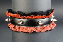 Черно-красный подшитый чокер Готика-10 . С металлическими заклепками. Застёжка-кнопка.