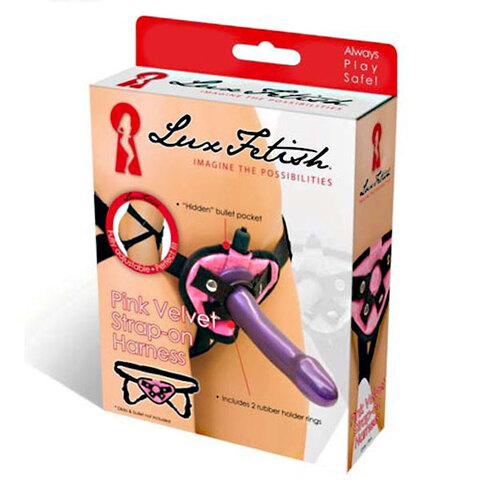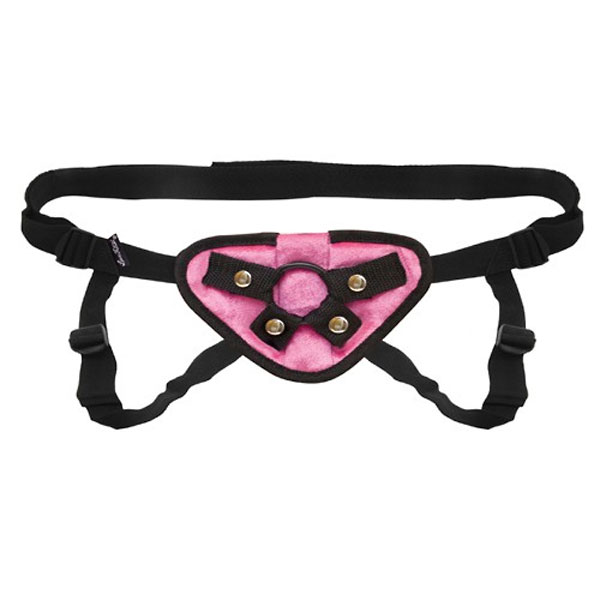 Розовые плюшевые трусики с черными ремешками для закрепления на теле. Имеют два резиновых кольца для фаллоса, что позволяет использовать с трусиками фаллоимитаторы различных диаметров. Трусики оснащены надежными клипсами-застежками и брендированными металлическими кнопками.