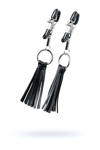 Зажимы классической формы украшены кисточками из PU- кожи. Они не только стимулируют соски, но и придают игривый вид. Сдавливание регулируется болтиком и может быть усилено или уменьшено во время интимной игры. Покрытие на концах зажимов защищает нежную кожу.