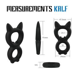 Rooster Kalf — мягкое силиконовое двойное кольцо для пениса, напоминающее по дизайну кошку. Оно сконструировано таким образом, что большое кольцо охватывает пенис и мошонку, а маленькое кольцо - основание эрегированного пениса. Вы можете носить это кольцо для члена так, чтобы маленькое кольцо было близко к телу, заставляя большое кольцо тянуть ваши яички вперед. Альтернативно, вы можете носить большое кольцо близко к телу, чтобы маленькое кольцо лучше удерживало ваш пенис. Любой способ ношения Rooster Kalf удобен и приводит к заметной эрекции. Внутренние диаметры - 2 и 2,5 см.