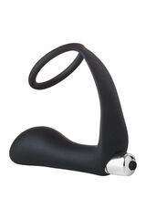 Черное эрекционное кольцо с вибропробкой Vibrating Anal Plug With Cockring. Пробка движется вперед и назад, массируя простату с каждым толчком бедер. К ощущениям можно добавить вибрации, нажав на кнопку съемной 10-скоростной пули. Пробка изготовлена ??из гладкого силикона. Диаметр пробки - 3,4 см.