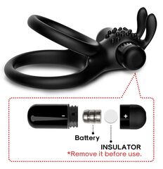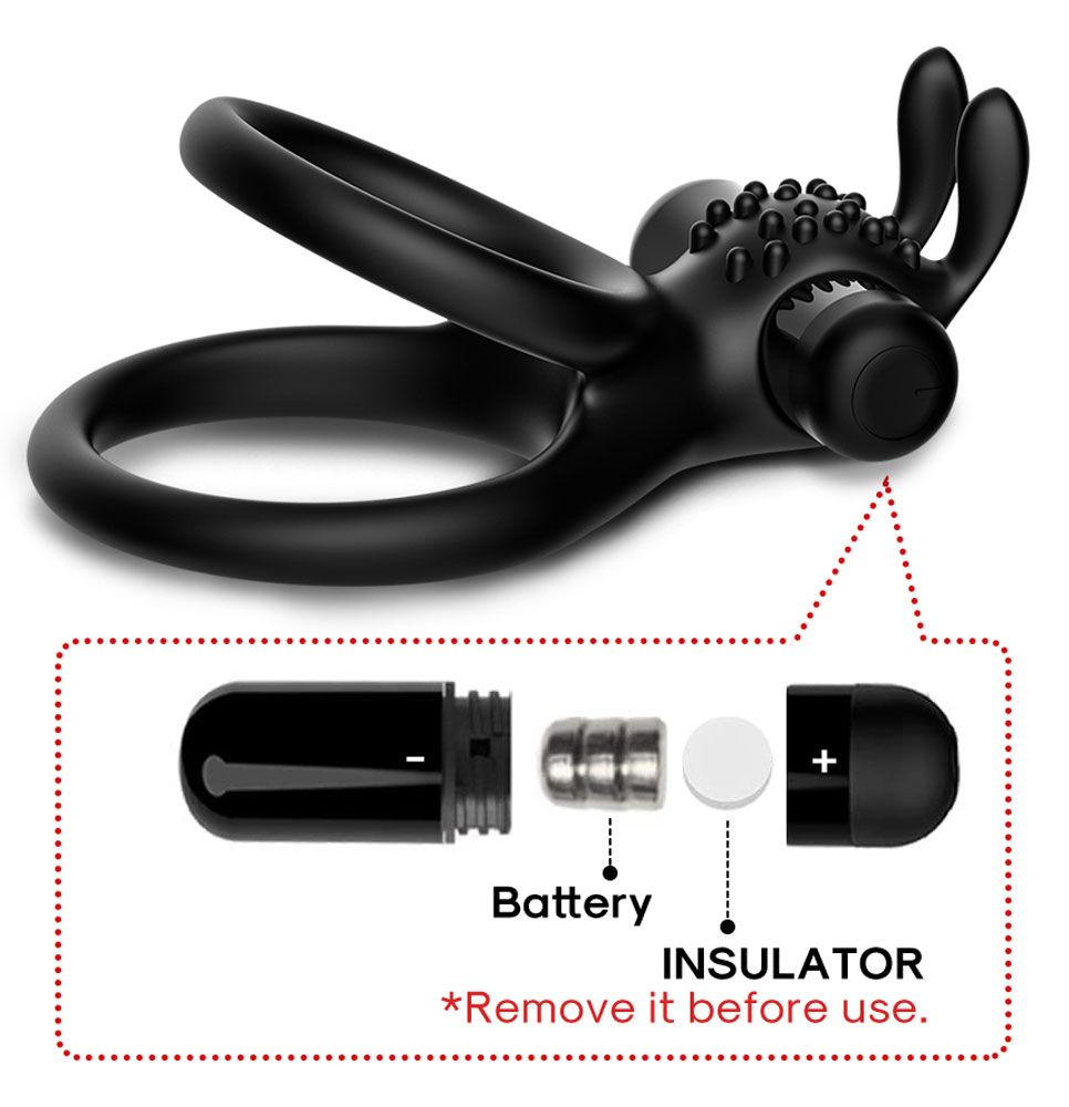 Эрекционное виброкольцо с дополнительным стимулятором клитора и дополнительным кольцом под мошонку. Внутренний диаметр колец - 3 и 3,6 см.