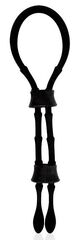 Черное силиконовое эрекционное кольцо-лассо с двумя утяжками