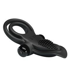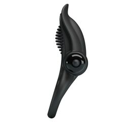 Черное силиконовое эрекционное кольцо с вибрацией и подхватом мошонки