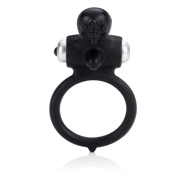 Эрекционное виброкольцо черного цвета, изготовленное из качественного безопасного силикона. Имеет клиторальный стимулятор в виде мягких шипов для стимуляции партнерши. Съемная вибропуля позволяет использовать игрушку как в режиме вибрации, так и без нее. Режим вибрации включается кнопкой в основании вибропули. Эластичный материал позволяет растягивать кольцо до нужного диаметра. Диаметр кольца в не растянутом состоянии - 3,7 см.