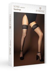 Черные матовые капроновые чулки с кружевом под пояс – тот элемент одежды, который должен быть у каждой женщины. Кружево нежное и приятное на ощупь, поэтому их будет очень комфортно носить. Благодаря особому плетению затемненные полосочки, если они появятся, можно убрать, поочередно потянув материал сначала по горизонтали, а потом по вертикали несколько раз. Плотность - 20 ден.