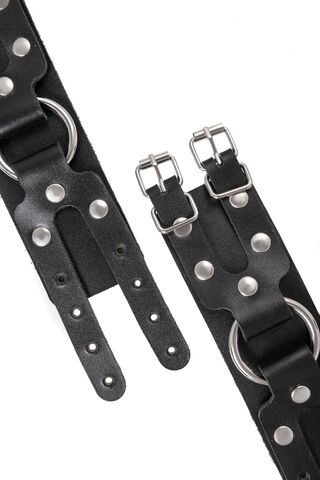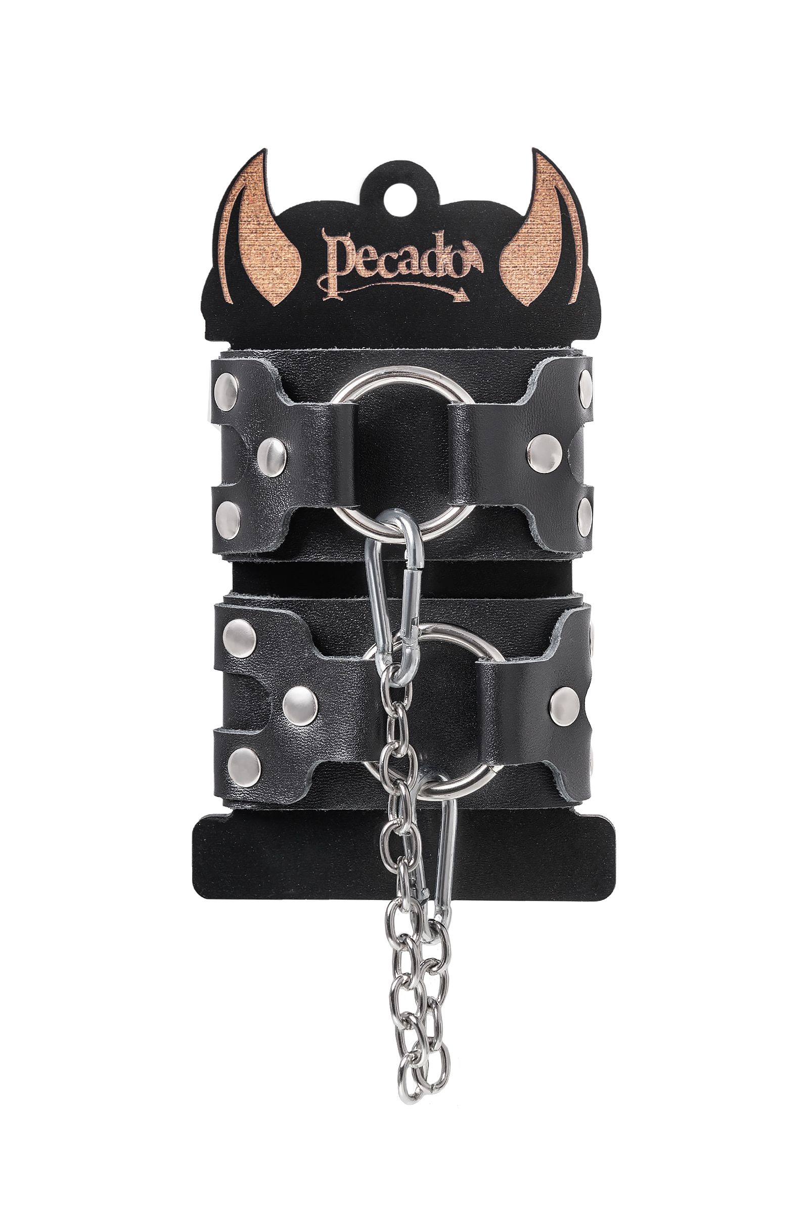 Одни из самых брутальных наручников в линейке Pecado. Стильные, надежные и устойчивые к долгим нагрузкам. Они созданы, чтобы дарить непередаваемые ощущения в ролевых играх. Изготовлены из прочной и натуральной кожи черного цвета. Ручная выделка материала обеспечивает высокую износостойкость. Заметная толщина аксессуара обеспечивает хорошую посадку на запястьях. На манжетах имеются ремешки с широким запасом регулировок, благодаря чему можно легко подобрать нужный обхват. Надежная высококачественная фурнитура хорошо фиксирует атрибут на руках. При правильном использовании не оставляет следов на теле. Между собой наручники соединены короткой, съемной цепью с двумя карабинами. При желании ее можно заменить на другой аксессуар. Данный сексуальный девайс можно использовать не только для БДСМ-сессий. А также, как стильный браслет в своем ежедневном образе. Идеально подходит и мужчинам, и женщинам, и начинающим, и опытным парам. Наслаждайтесь ролевыми играми! Вместе с Pecado. Длина манжет – 15 см, ширина - 5 см.