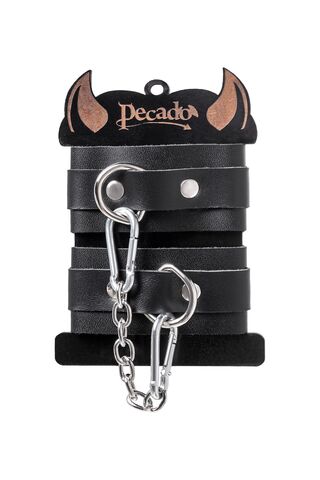 Ищите наручники для миниатюрной ручки? Тогда обратите внимание на эту модель от российского производителя Pecado. Они идеально созданы для обладательниц узкого запястья. Каждый элемент аксессуара изготовлен полностью вручную. Мягкий, чёрный материал нежно обхватывает руку и оставляет только приятные ощущения от контакта с телом. Аксессуар декорирован качественной фурнитурой, благодаря которой, при необходимости, его легко снять. Соединяются между собой с помощью короткой стальной цепочки и двух колец с карабинами. При правильном использовании не оставляют следов на теле. А особый аромат натуральной кожи придает пикантности сексуальному атрибуту. Подходит как для начинающих пар, так и для ценителей БДСМ-игр. Погрузитесь в мир пикантных удовольствий! Вместе с Pecado. Длина манжет – 15 см, ширина – 4 см.
