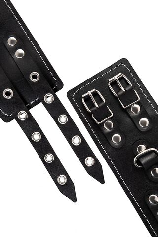 Благодаря универсальному размеру наручники могут использоваться и мужчинами, и женщинами. Размер легко регулируется с помощью металлических пряжек, органично вписывающихся в общий стиль. Длина манжет - 20 см, ширина - 7 см.