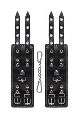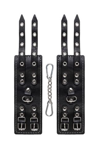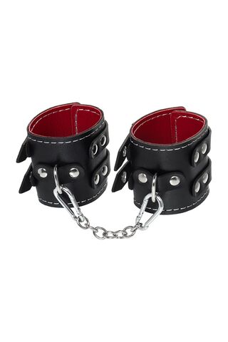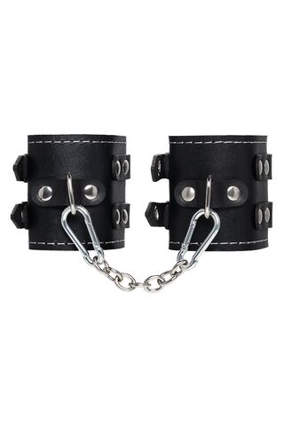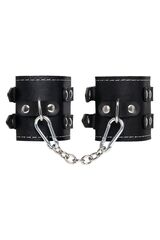Наличие двух колец и карабинов, соединенных между собой металлической цепочкой, позволяет использовать изделие как раздельно – аксессуар-манжеты, так и как наручники для фиксации. К широким металлическим кольцам также можно присоединить и другие аксессуары при помощи карабинов.