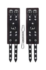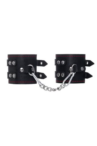 Стать покорной для своего господина можно с помощью стильных наручников от бренда Impirante. Манжеты наручников изготовлены из прочной натуральной кожи черного цвета. Шикарная выделка, приятные тактильные ощущения и аромат изделия добавляют нотки особого возбуждения во время игры. Оптимальная ширина атрибута фиксирует запястья и не оставляет следов на теле. Качественные люверсы и крепкий замок позволяют надежно обездвижить руки нижнего партнёра. К металлическим кольцам с помощью карабина возможно присоединить другие необходимые аксессуары для Вашей БДСМ- сессии. Ширина манжет - 7 см.