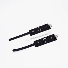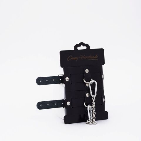 В комплект входит прочная соединительная цепочка с двумя надежными карабинами , которые обеспечивают стабильность и контроль. Общая длина изделия составляет 34 см , а каждая манжета имеет размеры 25,5 х 7 см , что делает их универсальными и подходящими для любого типа использования.