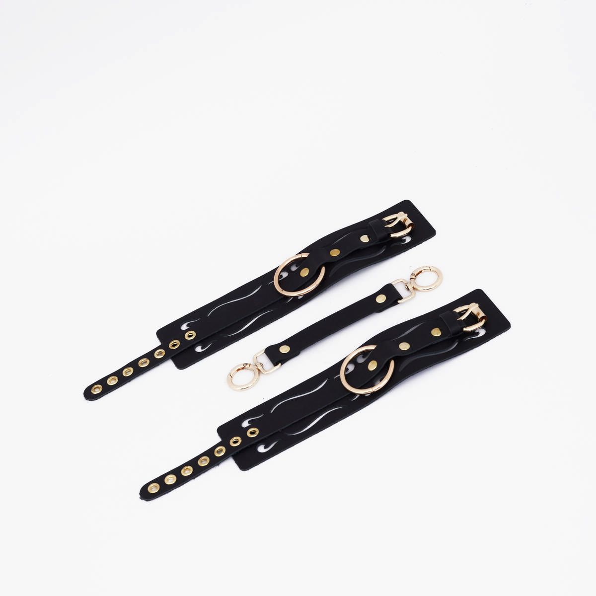 Изделие выполнено из высококачественной натуральной кожи , которая мягко облегает, обеспечивая комфорт даже при длительном использовании. Особое внимание уделено деталям: надежная стальная фурнитура с золотистым покрытием добавляет конструкции прочности и нотку элегантности, делая эти оковы по-настоящему уникальными.