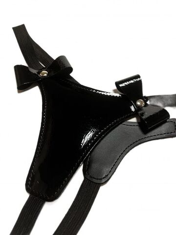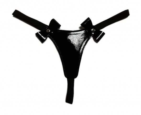 Черные лаковые трусики-стринги с бантиками