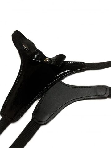 Сексуальные черные стринги, выполненные из эко-кожи. Декорированы спереди бантиком. Лицевая сторона выполнена из лакового материала, а внутренняя из матового. Благодаря эластичной резинке, отлично сядут по фигуре, подойдут на размеры 40-46. Очень красивая и удобная модель, которая поможет создать дерзкий сексуальный образ для вашей любовной игры!