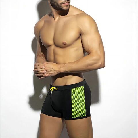 Черные мужские плавки-боксеры с принтованными вставками по бокам.