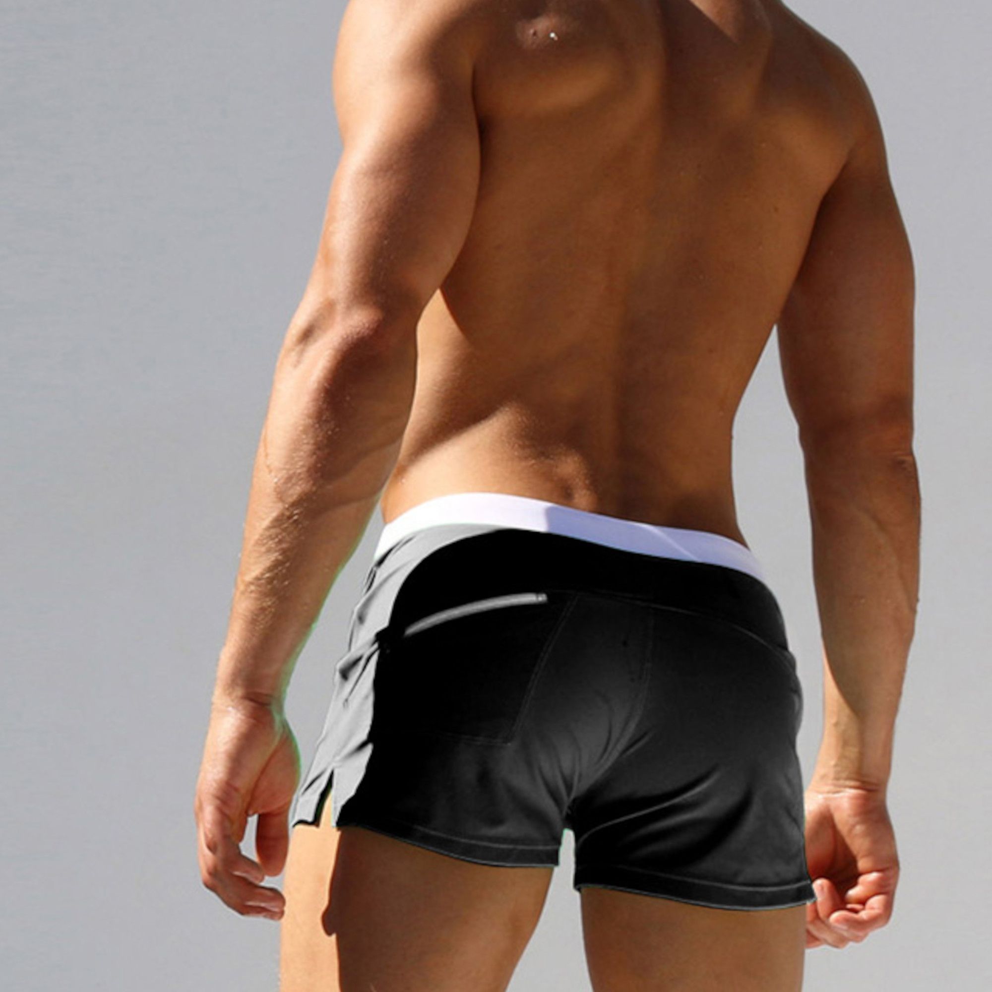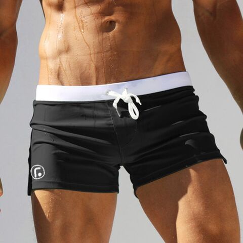 Черные мужские плавки-хипсы с белым поясом. Быстросохнущая ткань.