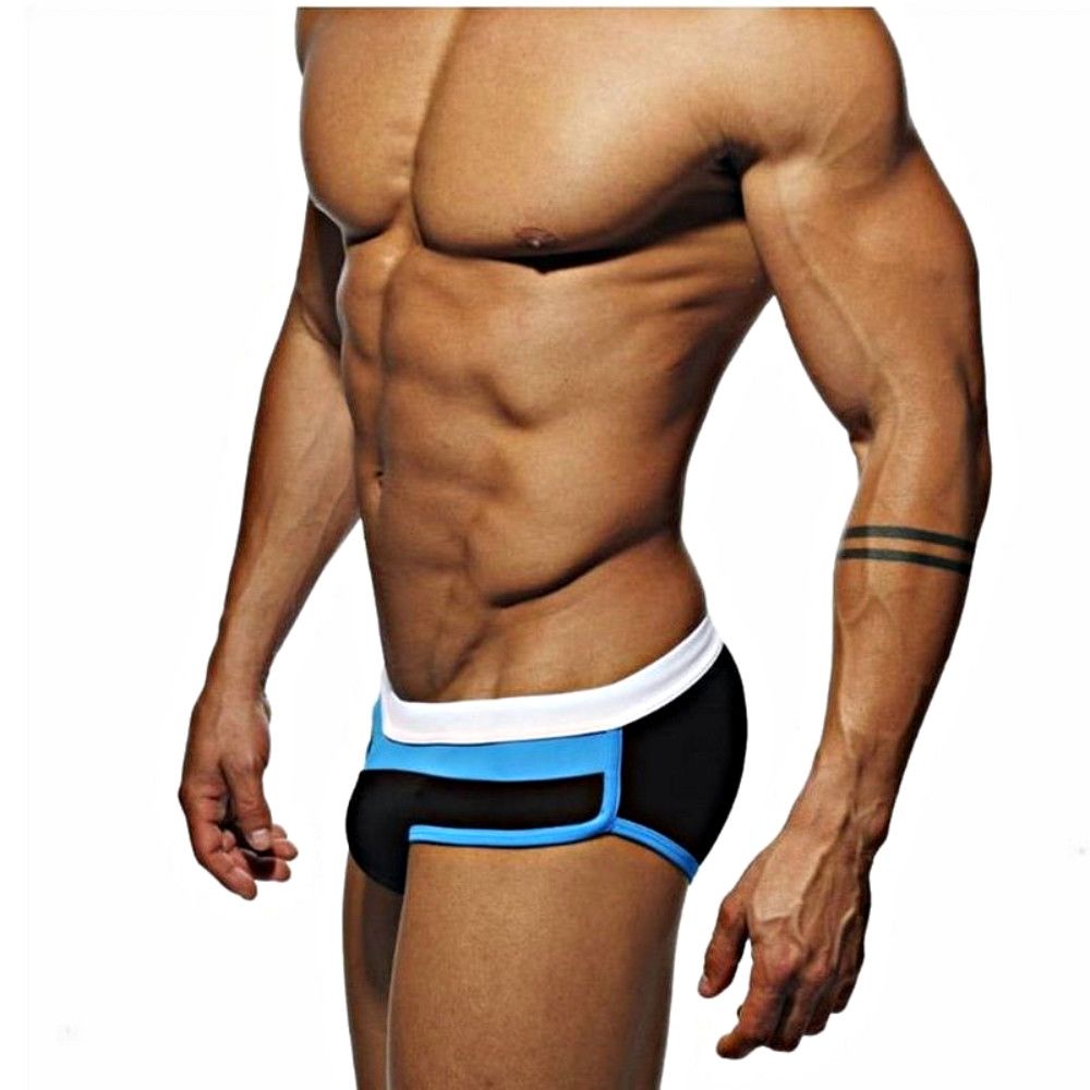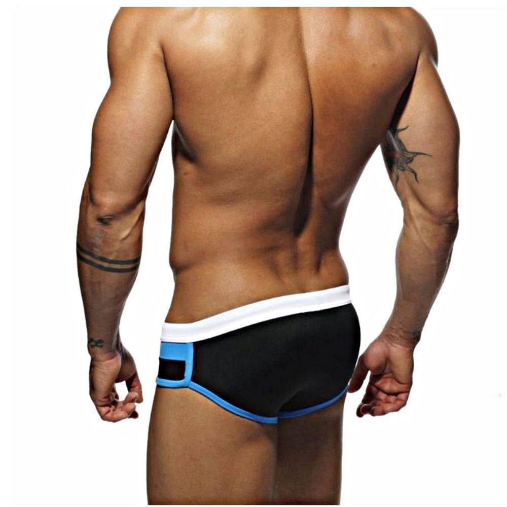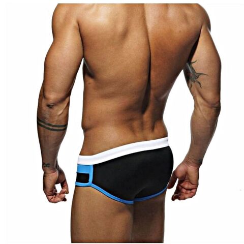 Черные мужские плавки с контрастными полосами на поясе.