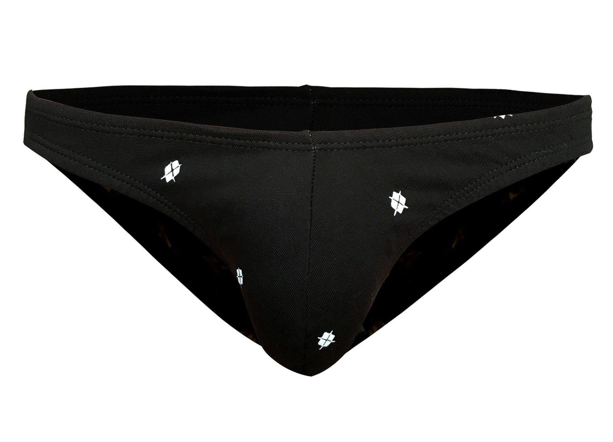 Черные мужские трусы-слипы с ромбовидным принтом.