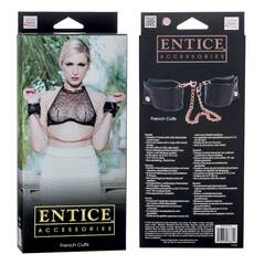 Черные наручники с позолоченной цепью French Cuffs из коллекции Entice. Есть такие аксессуары, которые не нуждаются в представлении и должны быть у каждого ценителя будоражащих кровь ласок. Будьте напористы, ведь сила всегда возбуждает. А эти наручники Вам в этом помогут. Длина цепочки - 42 см.