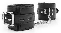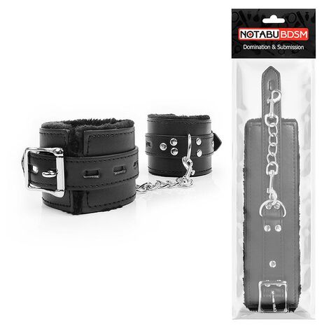 Великолепные наручники под кожу для любителей БДСМ-игр! Внутренняя сторона изделий отделана мехом, который препятствует натиранию кожи. Размер наручников регулируется с помощью ремней. Наручники соединяются между собой металлической цепочкой.