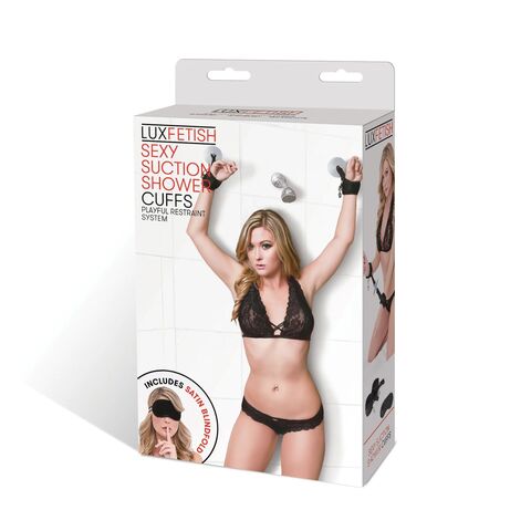 Черные наручники с присосками и карабинами Sexy Suction