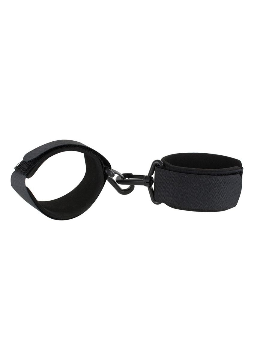 Черные наручники из полиэстра скреплены карабинами.