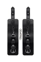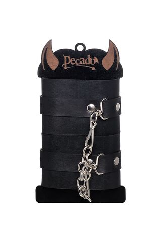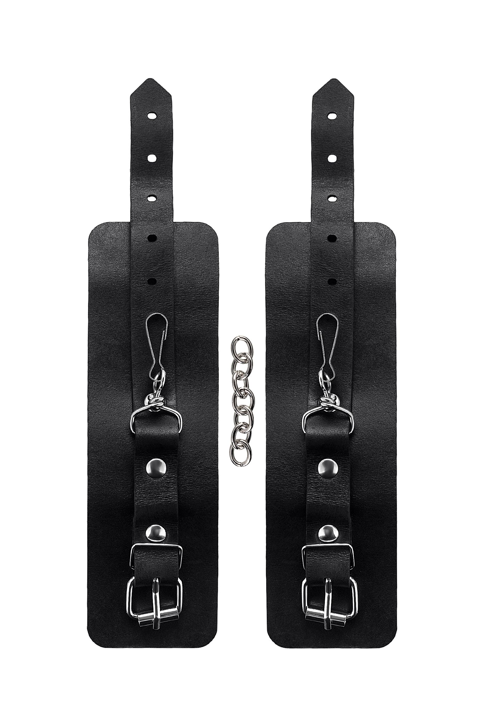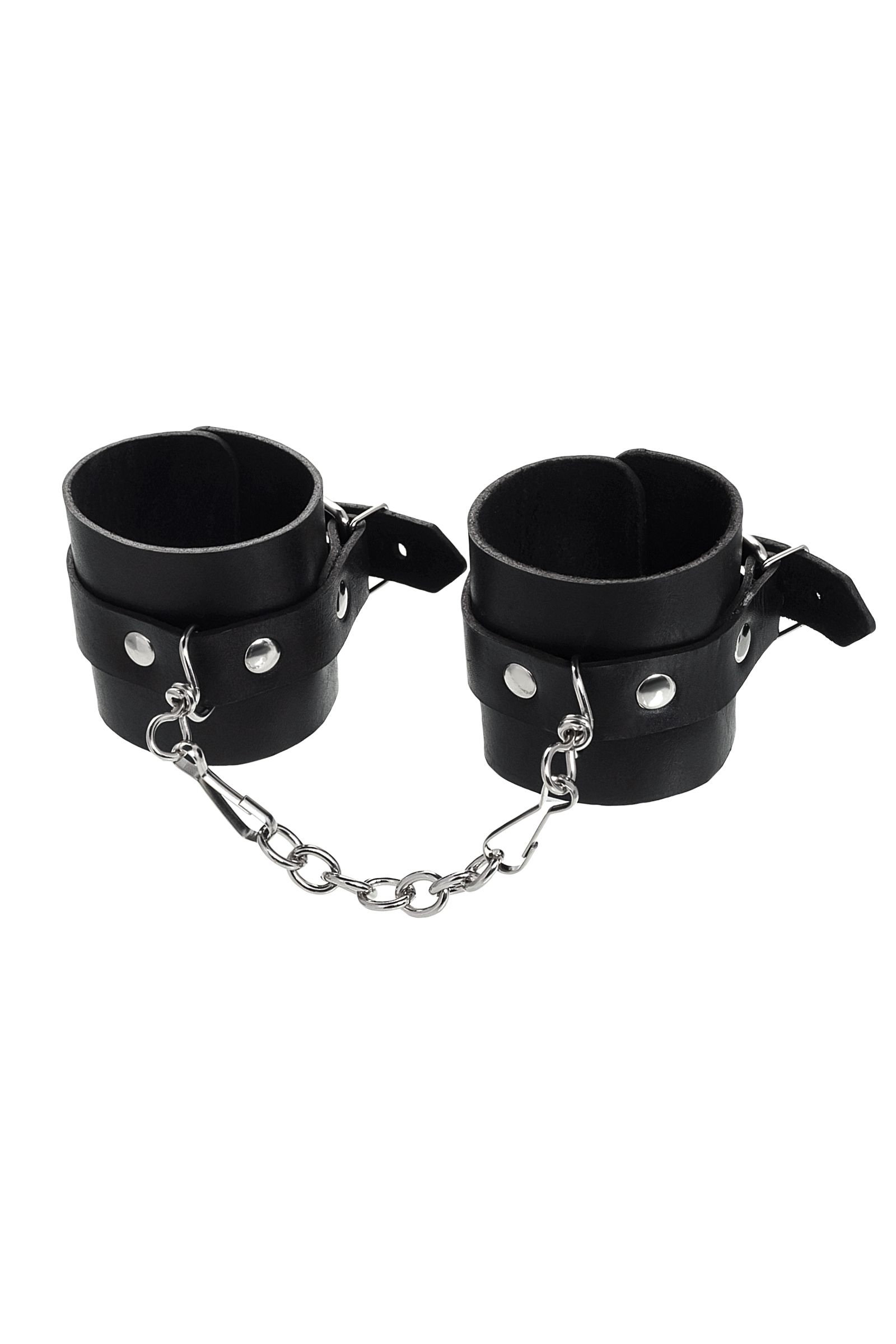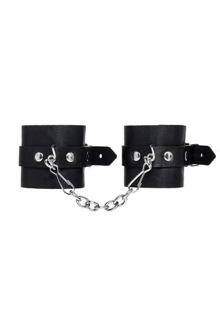 Черные однослойные наручники из натуральной кожи с цепочкой